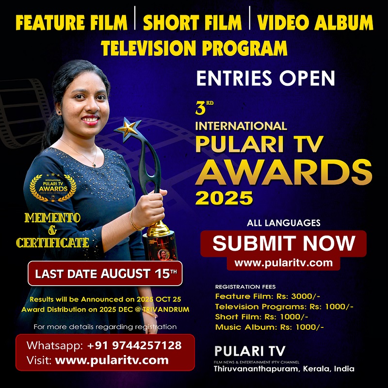 The International Pulari Awards are organized every year by Pulari TV and include competition and awards for cinema, television, short films, and documentaries. Apart from this, a movie news portal called Show Time and a website called New Face, which introduces new faces, are working under the control of Pulari TV.